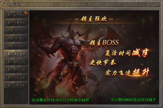 活动说明 : 活动期间,领主的复活时间减半,复活时间不与日常领主盛宴的复活时间叠加。